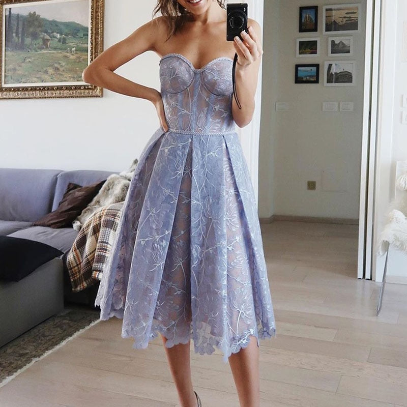 sfaws™- Sexy Sling Strapless Puffy Princess Dress Fashion Sleeveless High Split Party Evening Dress Women Solid Lace Slim Elegant Dress